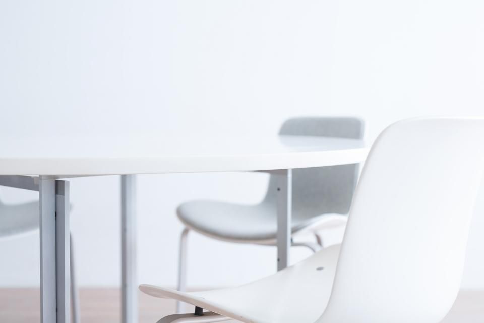テーブルトップは人造大理石のホワイト脚部はステンレススチール。