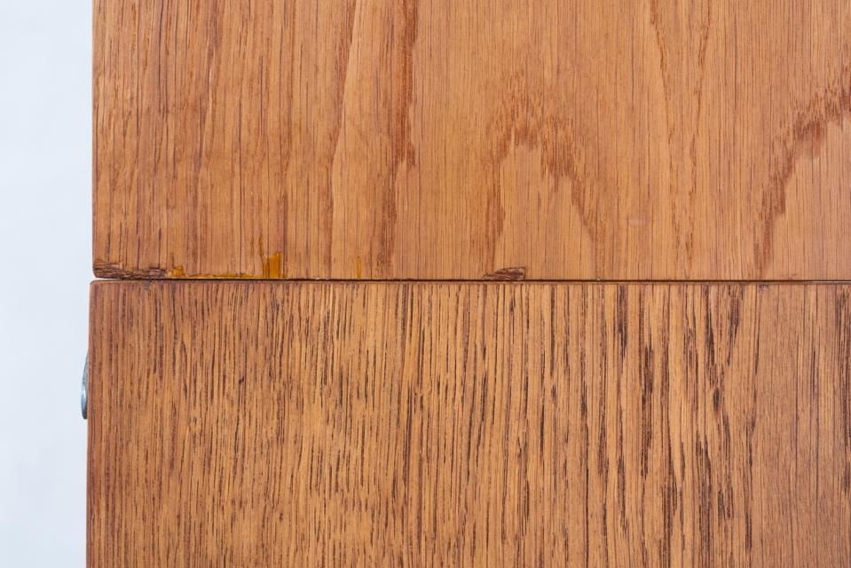 損傷が出がちな脚部に本体とは異なるオーク材で強度とデザインアクセントを加えたりと、