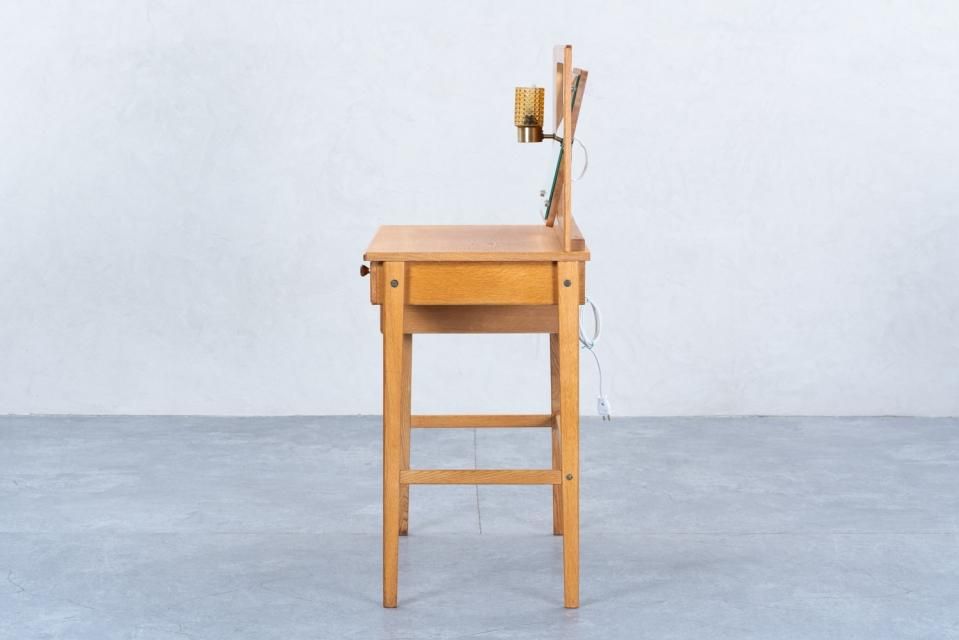 ヴィンテージには珍しい、ライト付きのドレッサーです。鏡の角度も調節できる優れもの。