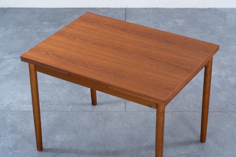 デンマークビンテージの代名詞とも言える、エクステンション機能付きのダイニングテーブル。九州よりも小さな国土のデンマークで、限られた空間を有効に活用できるエクステンションという機構が当時から重宝された事は想像に難くありません。