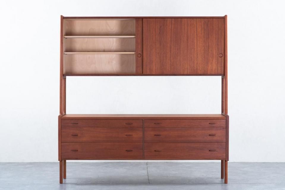 普通に見える、ほんの一工夫。それが如何に大切かを、このキャビネットは語っているよう。経年により美しさを増したチーク材も見所。